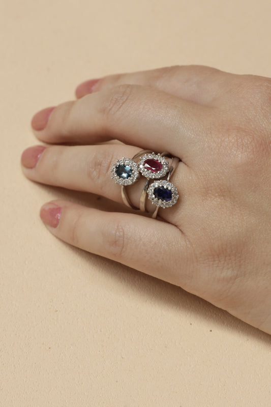 Tenemos diferentes estilos y formas para que elijas tu favorita y la combines con la piedra que más te guste. Están elaboradas en plata rodiada con pétalos de circonitas blancas.