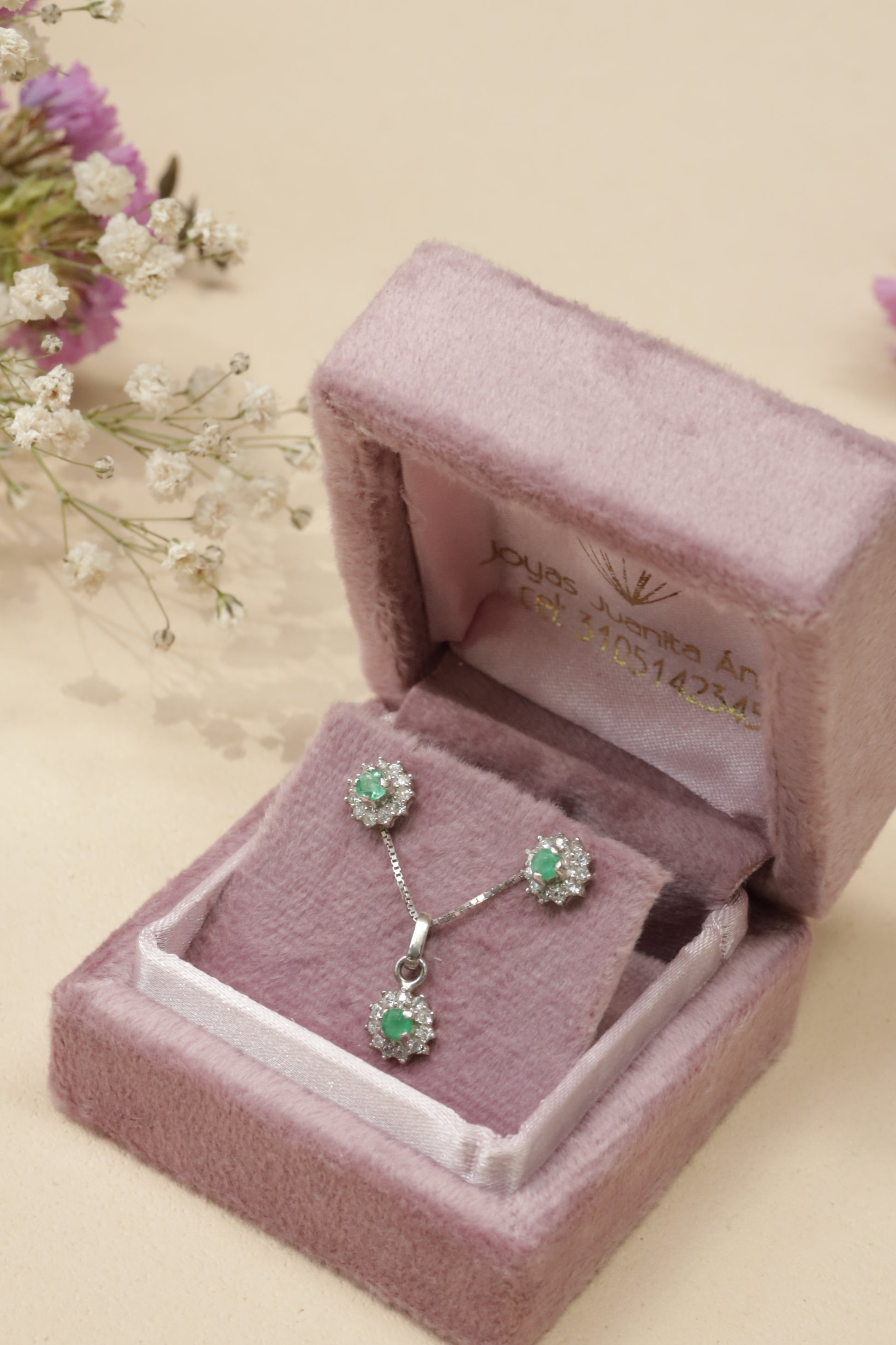 Collar lucia piedra central ESMERALDA y circones plateado elaborado en plata rodinada. Cadena veneciana de 45cm 240.000