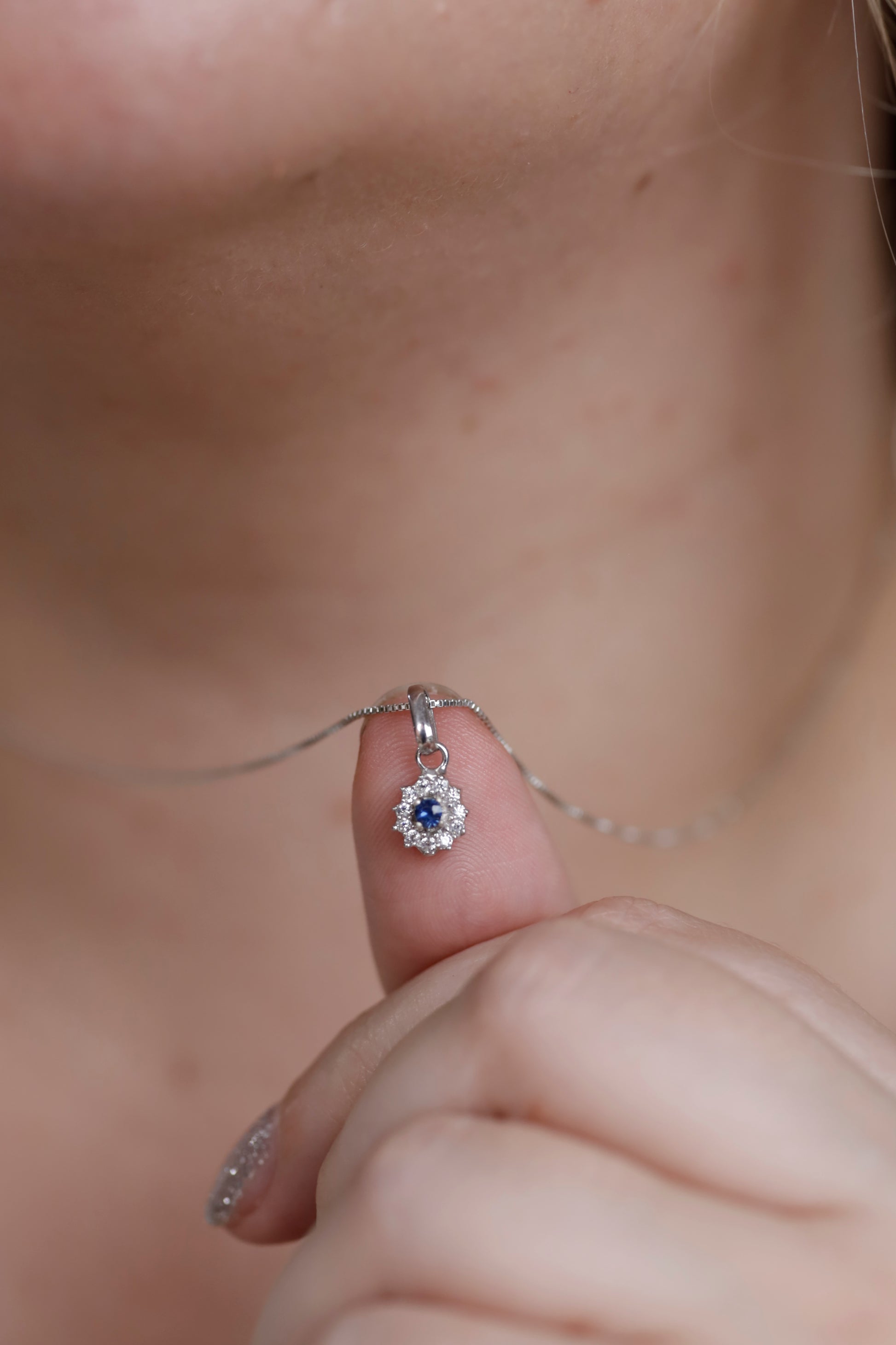 Collar lucia piedra centralZAFIRO AZUL natural y circones plateadoelaborado en plata rodinada. Cadena veneciana de 45cm